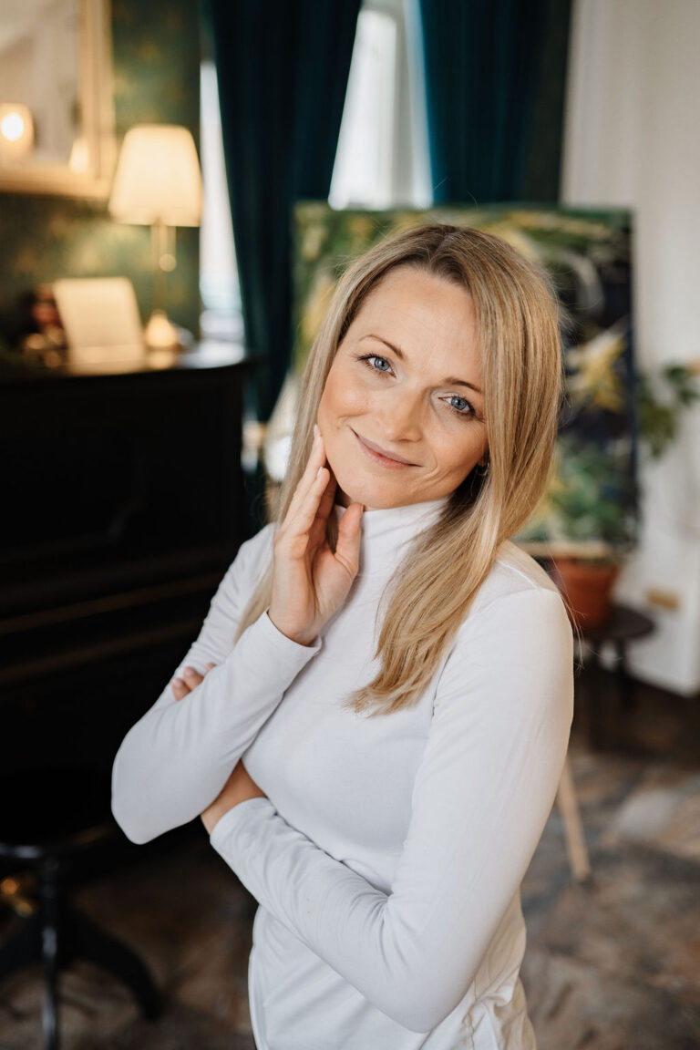Jsem interiérová designérka a autorka abstraktních obrazů. Propojuji zkušenosti z architektury, umění a práce s prostorem do tvorby, která má hloubku, klid a smysl — v lehkosti, s elegancí a hlubokým respektem k člověku i prostoru.